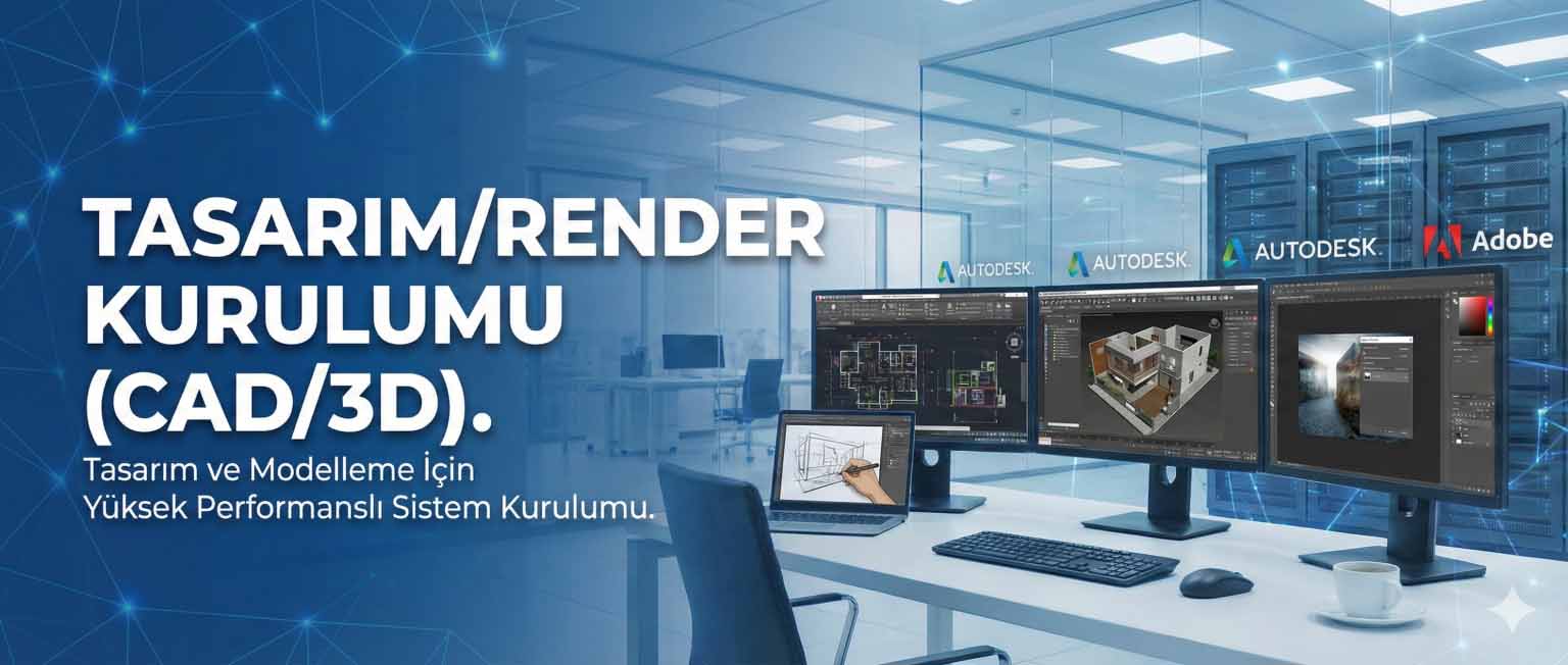 3ds Max ve V-Ray kurulumu, Corona Renderer kurulum ve ayarları, Lumion sistem gereksinimleri ve kurulum, Adobe Premiere & After Effects teknik destek, AutoCAD ve Revit kurulumu, Unreal Engine 5 mimari görselleştirme kurulumu, SketchUp eklenti (Plugin) kurulumu, Mimarlık ofisleri için IT desteği, Lumion & 3ds Max kurulumu, Kurumsal workstation bakım anlaşması